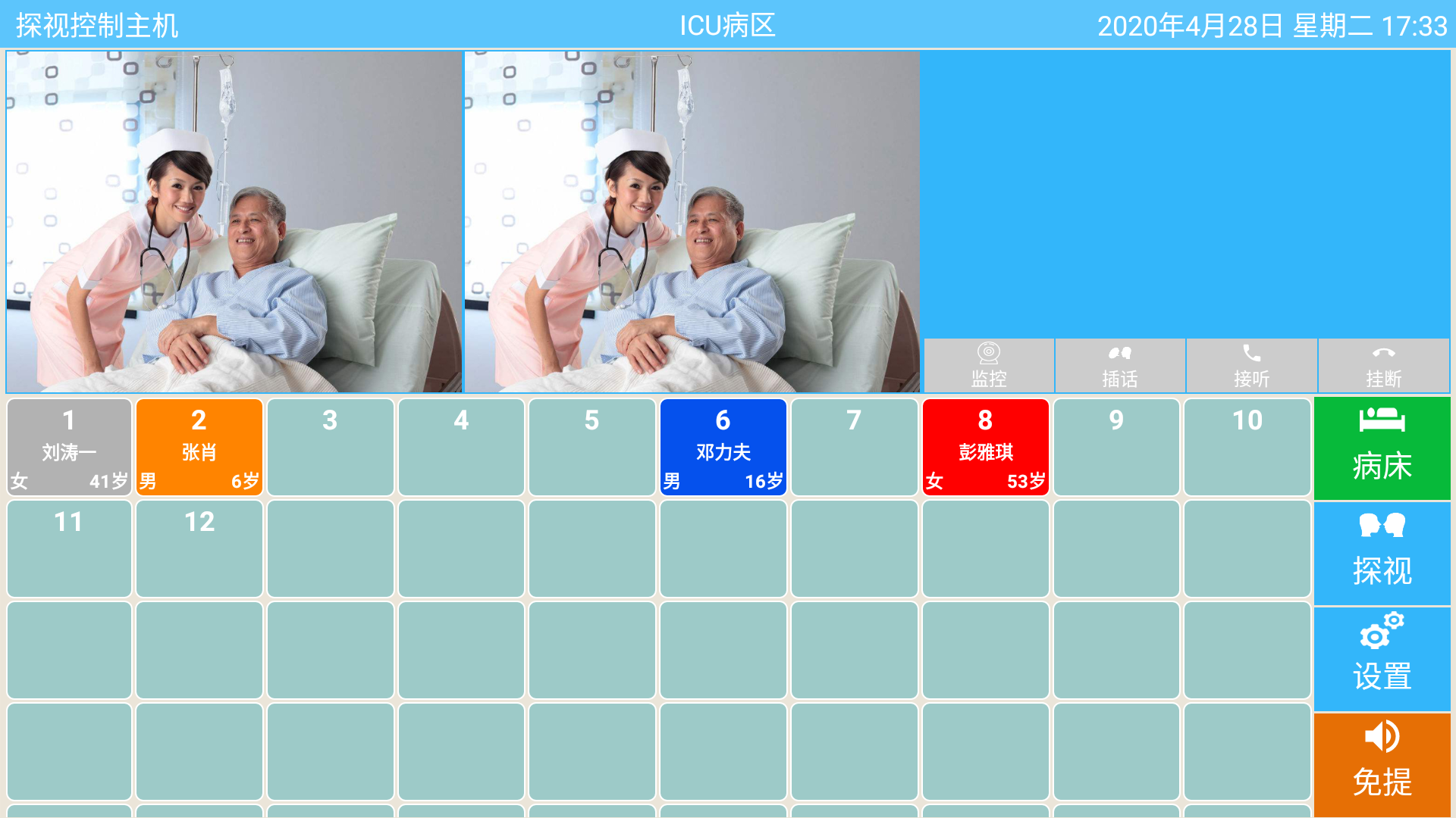 醫護人員可通過(guò)床頭分機攝像頭對患者的情況進(jìn)行定時(shí)的查看,可以減少行走查看患者的時(shí)間。